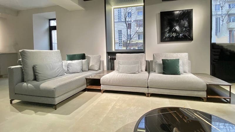 - В-третьих, огромная линейка тканей и кож в коллекции фабрики позволяет сделать диван именно таким, о котором вы всегда мечтали. Одних только оттенков серого в коллекции, если не 50, то 20 точно!