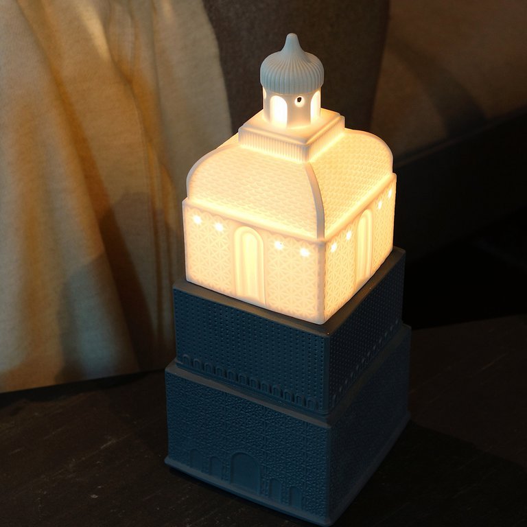 Lladro Metropolis Фарфоровая настольная лампа, размер - 15х15 х35 см, цвет - антрацит/белый