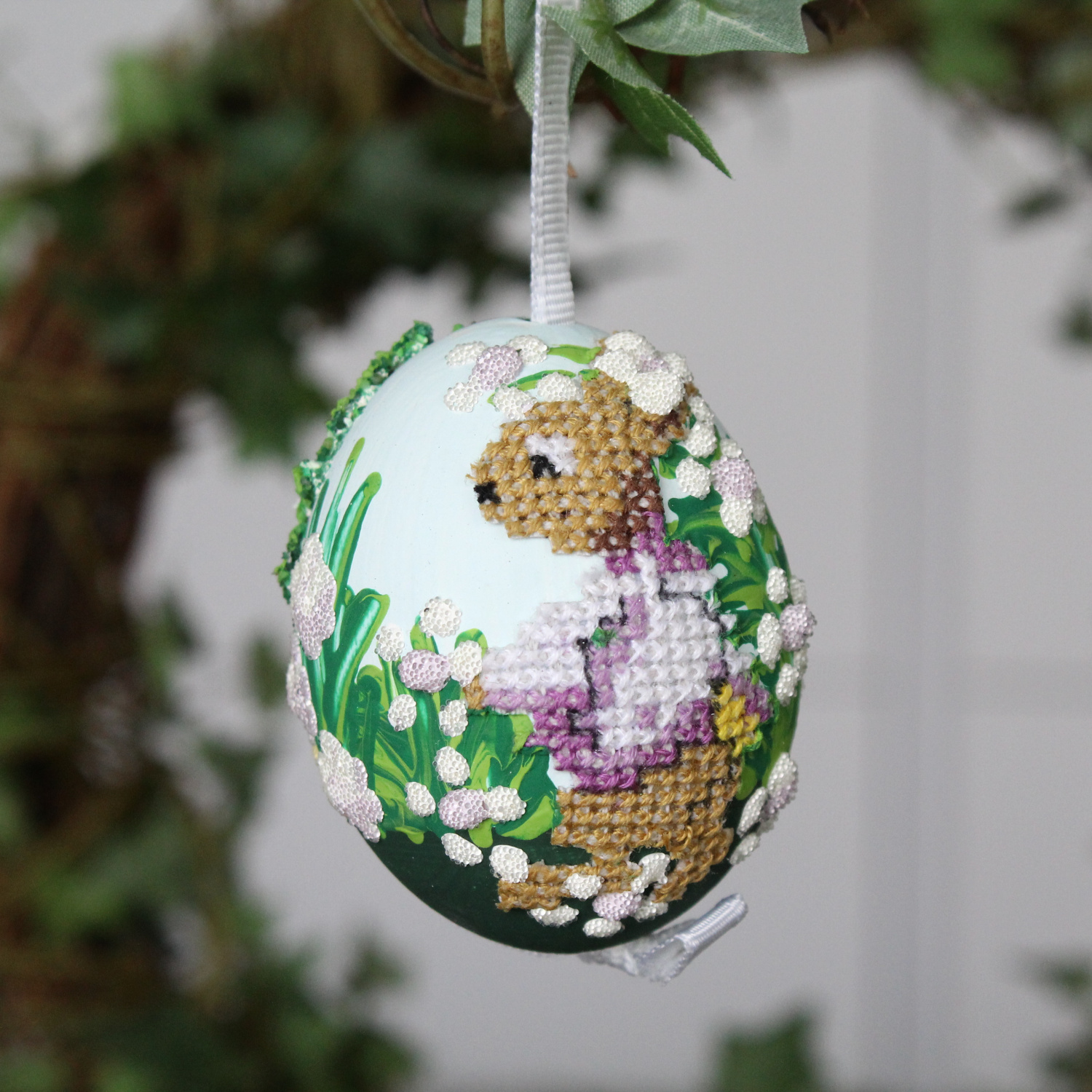 Peter Priess Пасхальное куриное яйцо с вышивкой и объемным рисунком