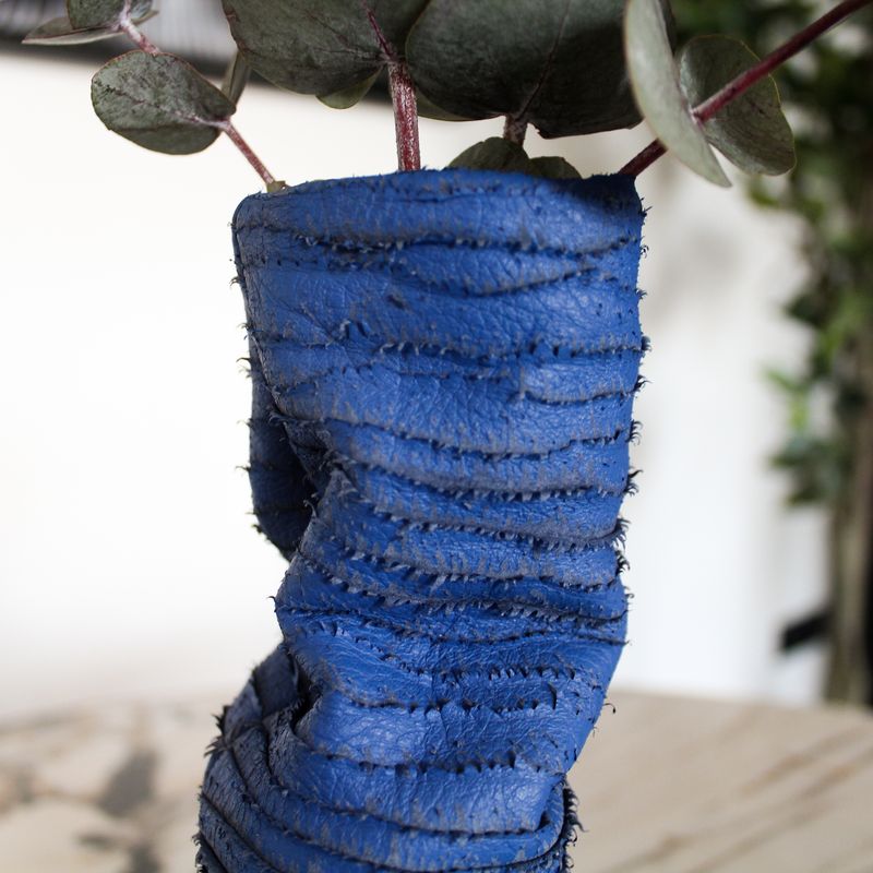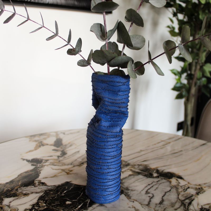 DAAN Design Ваза из натуральной кожи, высота - 24 см, диаметр - 5 см, цвет -  синий. Материалы - стеклянная колба и кожаный чехол