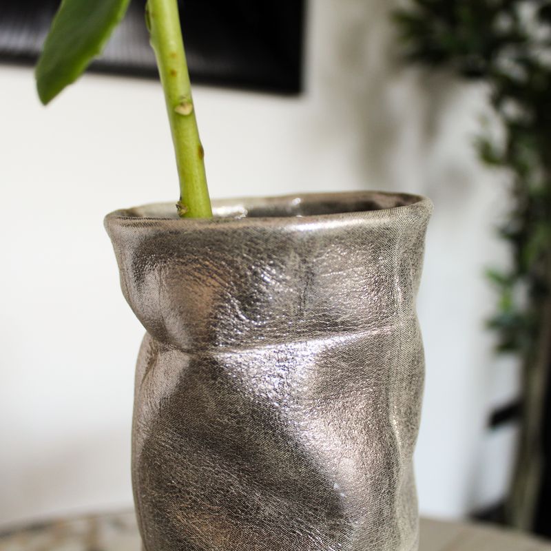 —DAAN Design Кожаная ваза, 28 см, молочный/серебряный