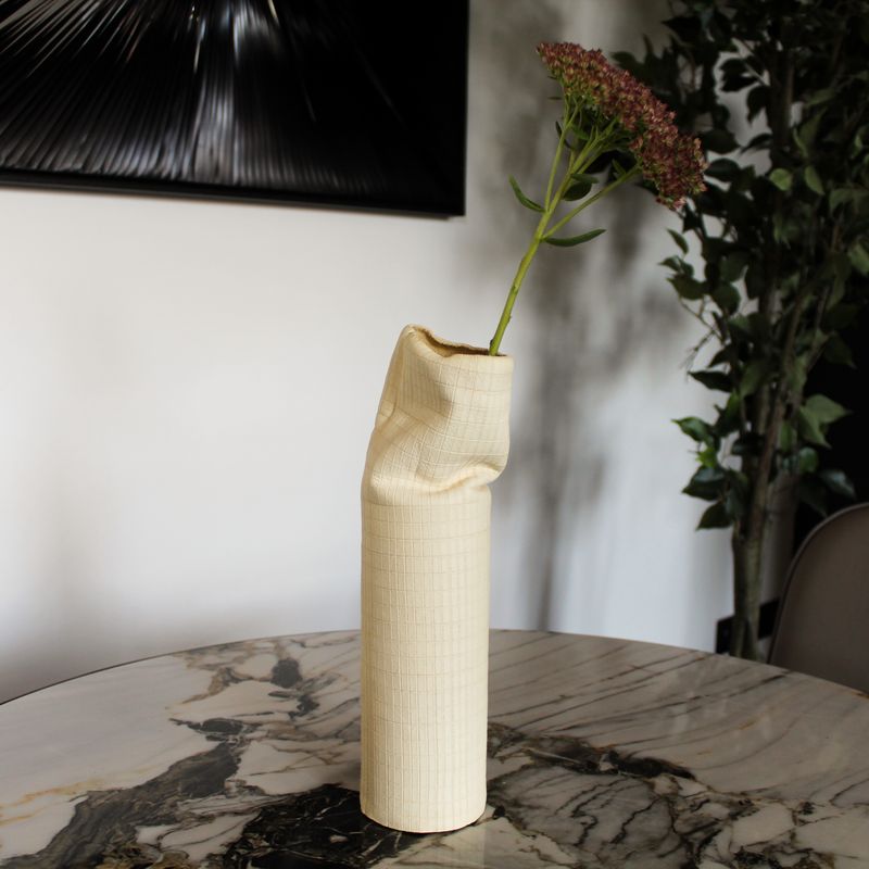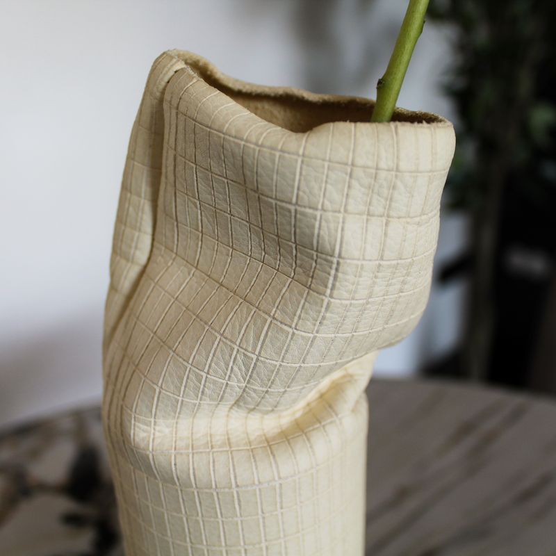 —DAAN Design Кожаная ваза, 30 см, молочный