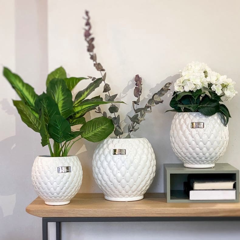 Lene Bjerre Rosabina Керамическое кашпо с ромбовидной простежкой, диаметр - 21 см, высота - 22 см, цвет - белый