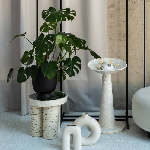 —Cera Керамический журнальный столик "Бирч", 42х42 см, слоновая кость/зеленый