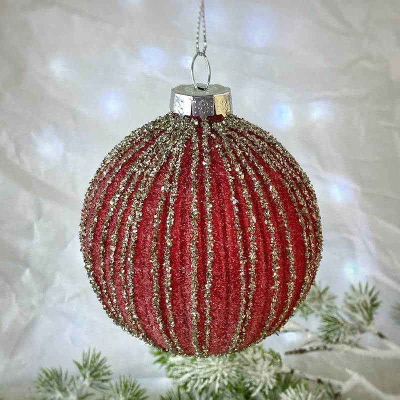 Boltze Ameta Стеклянная елочная игрушка "Шар" (тип 6 - с полосами), диаметр - 8 см, цвет - бордовый