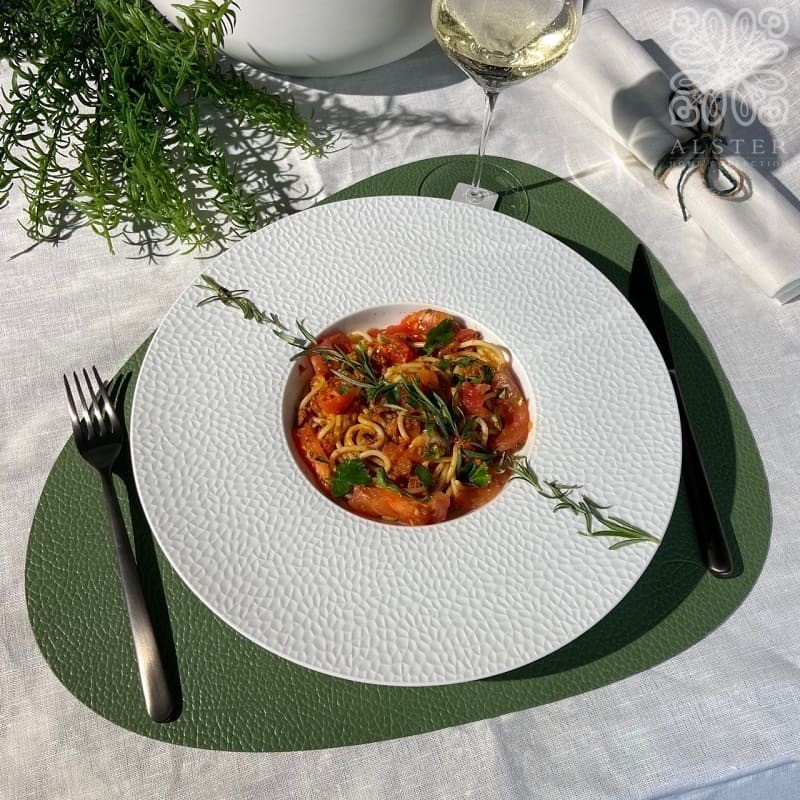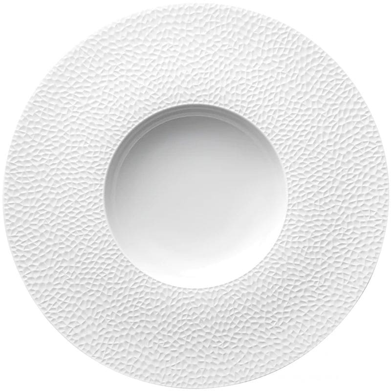 Degrenne Collection L Fragment Тарелка для пасты или супа из лиможского фарфора, диаметр - 30 см, цвет - белый: серединка - глянцевая, поля - матовые с рельефным узором. Посуду из коллекции L Fragment можно использовать в микроволновой печи и мыть в посудомоечной машине.
