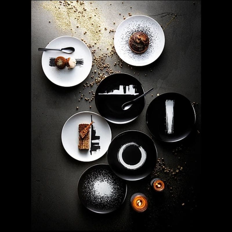 На протяжении многих лет шеф-повара раздвигали границы креативности, чтобы создавать потрясающие кулинарные эмоции, начиная с приготовления блюд и заканчивая подачей на стол. В результате впечатления посетителей полностью изменились. Коллекция отдает дань уважения шеф-поварам, ставшим художниками, деликатному и точному использованию их инструментов. Тарелка становится холстом, на котором оживают мазки кисти, чернильные пятна или потеки. Штрихи и эффекты побуждают нас продолжать творение и наносить последние штрихи нашими вдохновенными руками.. Коллекция будоражит воображение целым миром из возможных вариантов: доступны 4 варианта исполнения в черном или белом цвете, которые сочетаются либо с общим внешним видом, либо с эффектным контрастом.