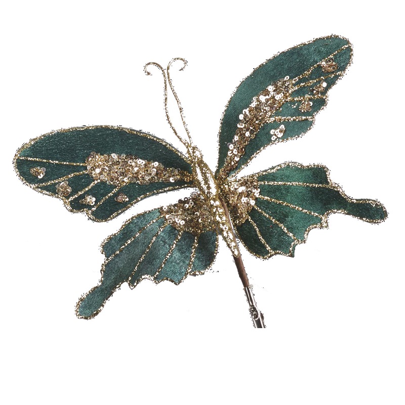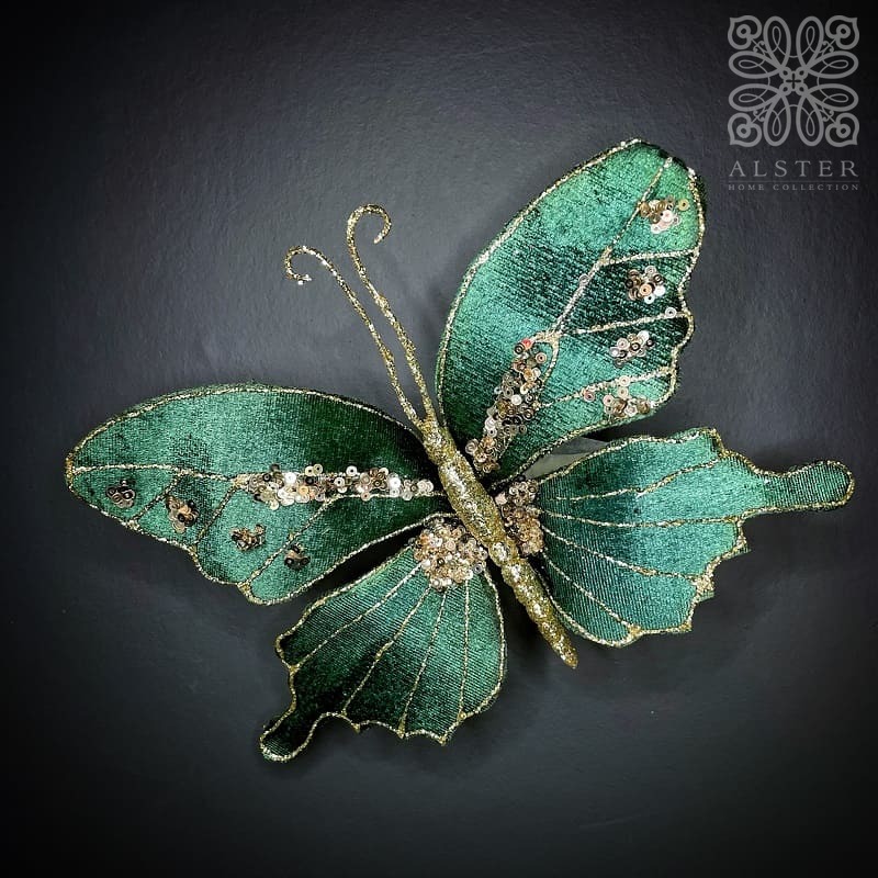 Goodwill Елочная игрушка на прищепке Бархатная бабочка, украшенная блестками и пайетками, ширина - 20 см, высота - 12 см, цвет - морской волны