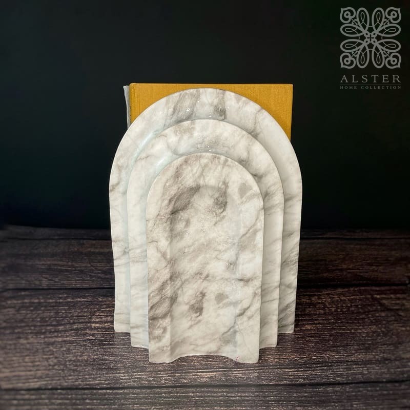 Goodwill Набор из 2-х мраморных держателей для книг, 20,5 см, белый/серый