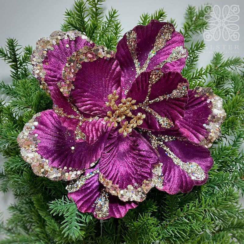 Goodwill Елочная игрушка на прищепке цветок - "Магнолия", размер - 22 см, цвет - бордовый, розовый