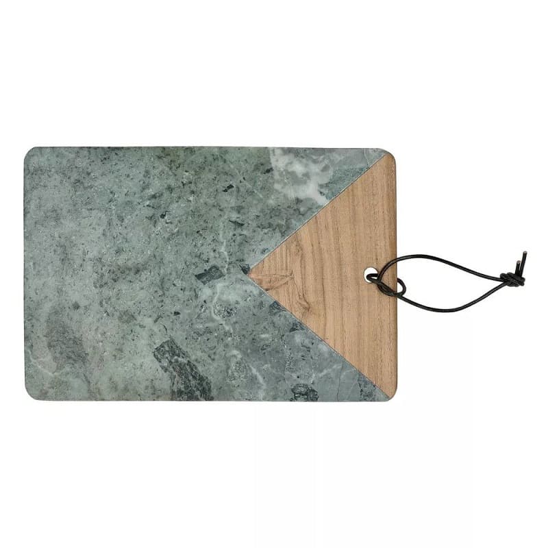 —Pomax Oregon Мраморная разделочная доска с деревянной вставкой, 30х20х1,5 см, зеленый