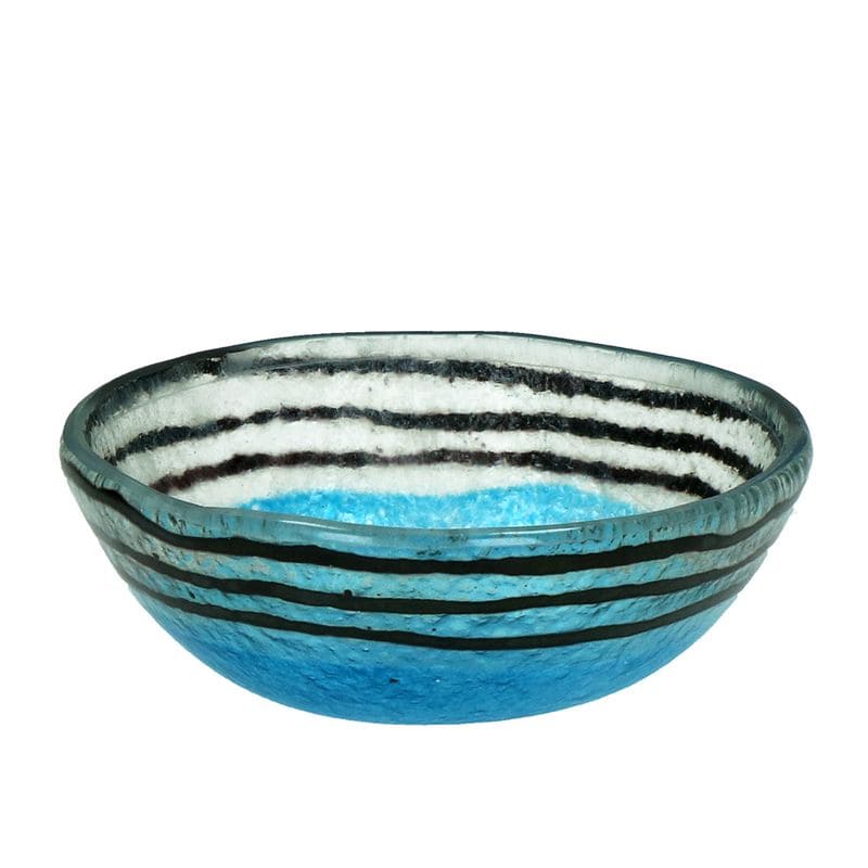 Pomax Vidro Стеклянная пиала (Тип 2 - полосатая). Размеры: диаметр - 12 см, высота - 4,5 см, цвет - прозрачный, голубой, черный. Миска идеально подойдет для подачи орешков, сухофруктов, конфет или соусов.