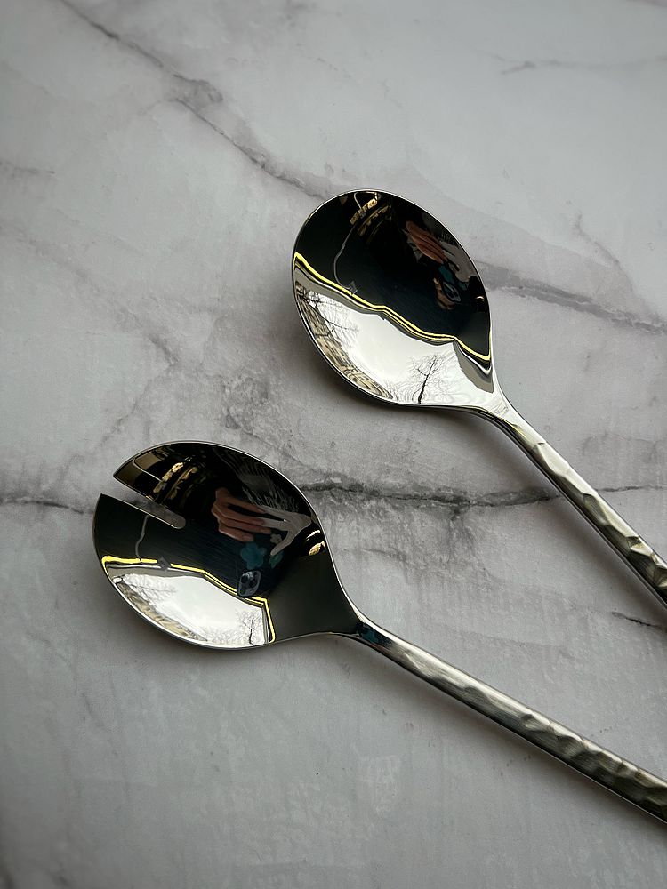 —Degrenne Fuse Martele Laiton Набор из 2 сервировочных ложек для салата, 26 см, нержавеющая сталь
