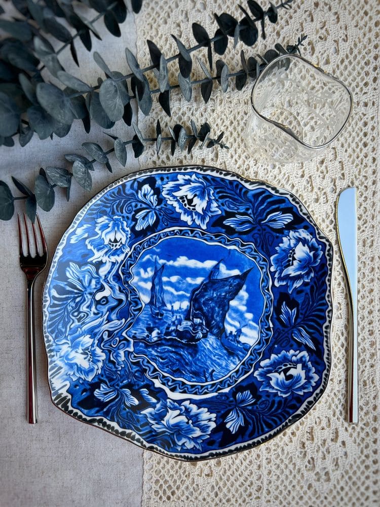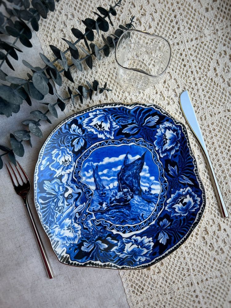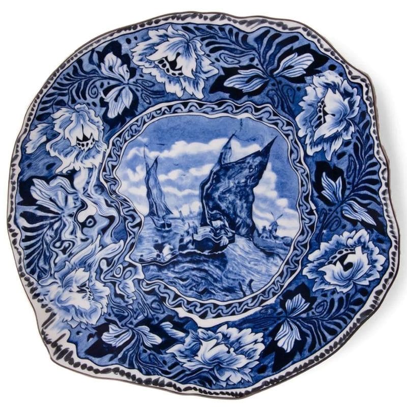Seletti Classics on Acid Фарфоровая тарелка для основного блюда Maastricht Ship, диаметр - 28 см, цвет - белый, синий. Дизайнер - Diesel Living with Seletti. Посуду из коллекции Classics on Acid нельзя мыть в посудомоечной машине и использовать в микроволновой печи.