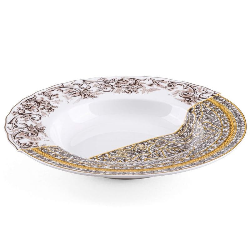 Seletti Hybrid Agroha Фарфоровая тарелка для супа , диаметр - 25,4 см, высота - 3,8 см, цвет - коричневый, белый, желтый. Дизайнер - CTRLZAK. Мы не рекомендуем мыть посуду из коллекции Hybrid в посудомоечной машине и использовать в микроволновой печи.