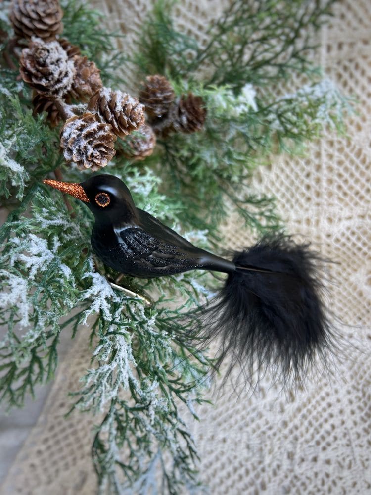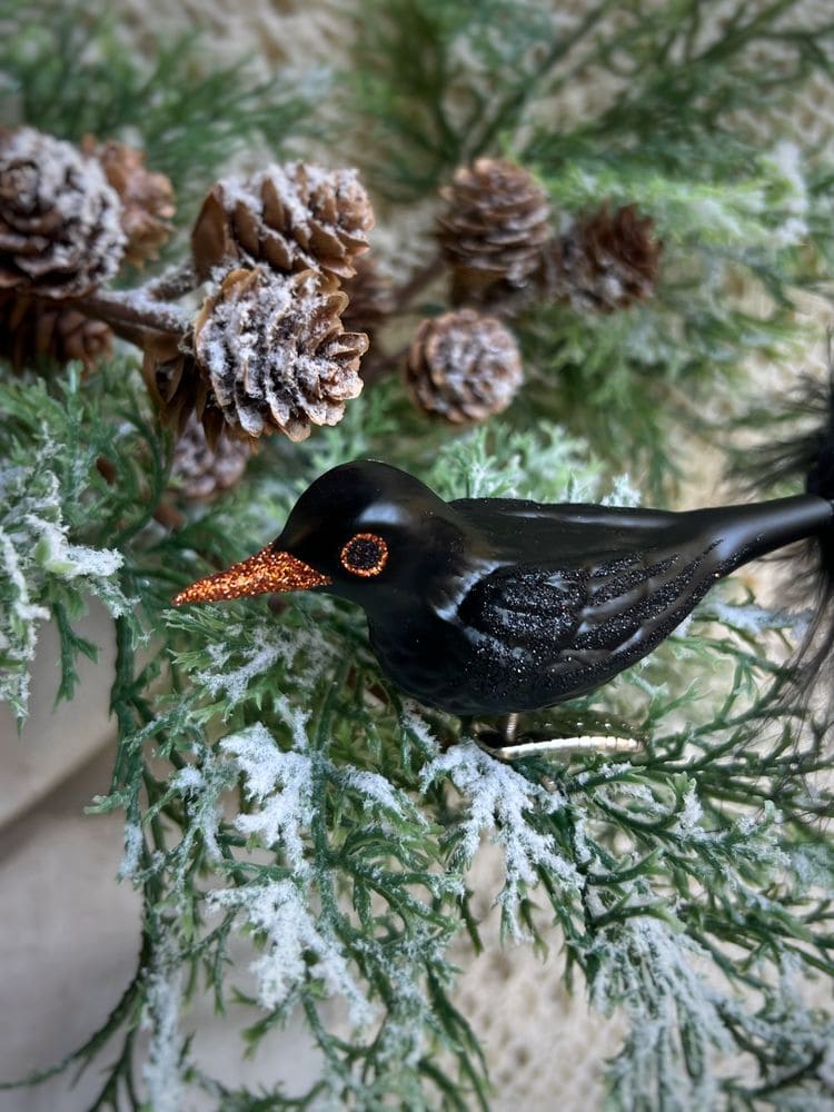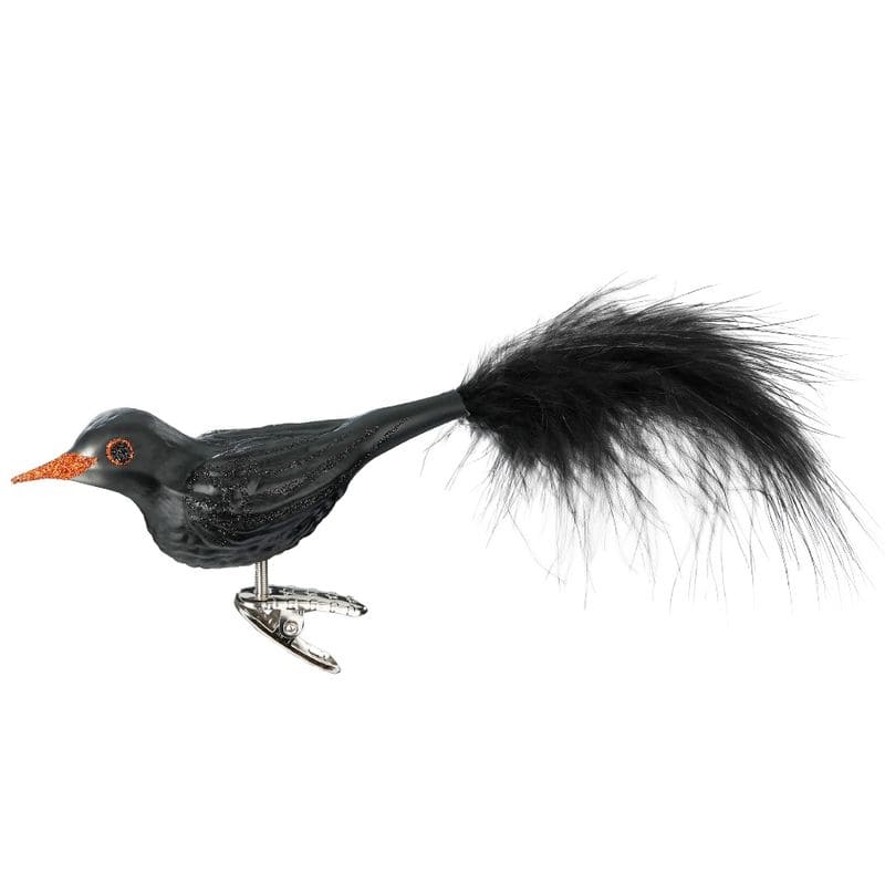 Inges Christmas Decor Mr Blackbird Стеклянная елочная игрушка на прищепке ручной работы Черная птица с длинным с хвостом и оранжевым клювом, размер - 10,5 см. Чтобы елочные игрушки Inge Glas служили вам в течение долгих лет, пожалуйста, соблюдайте правила по уходу (смотрите вкладку Подробности)