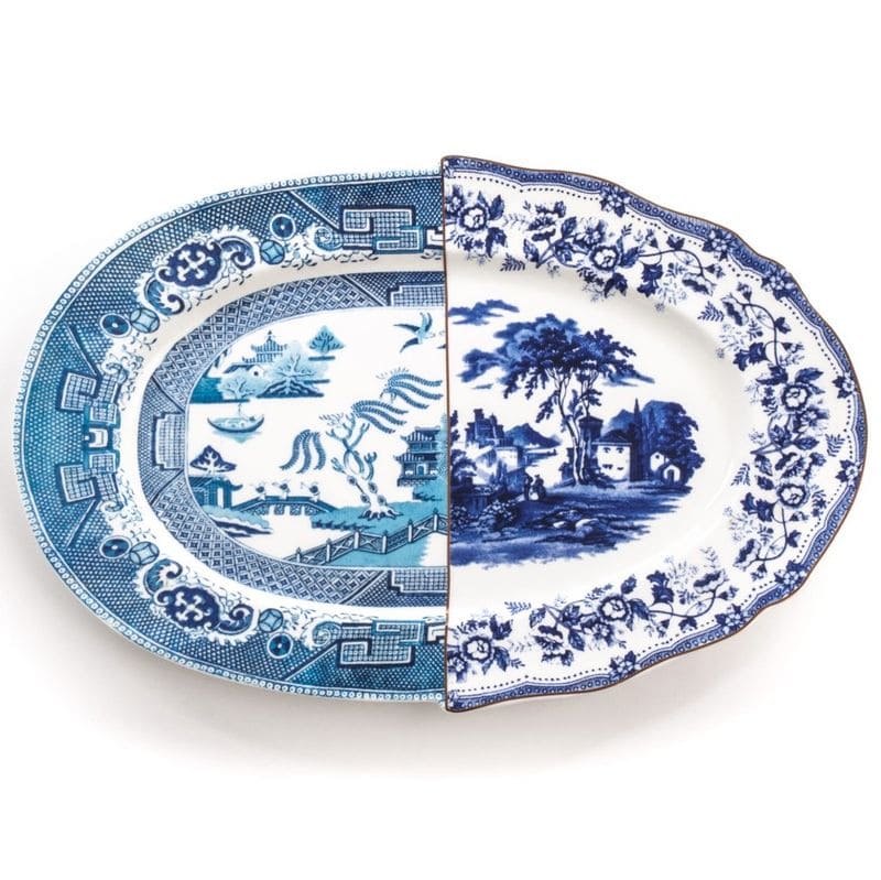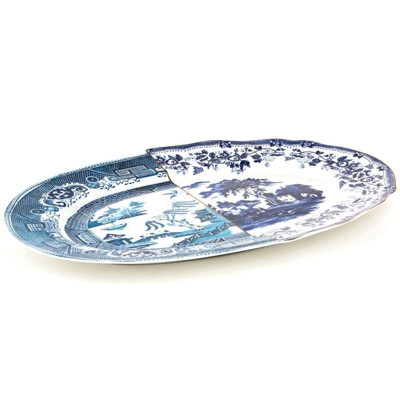 Seletti Hybrid Фарфоровое блюдо Diomira, размеры: 37х24,8 см, цвет - белый, синий