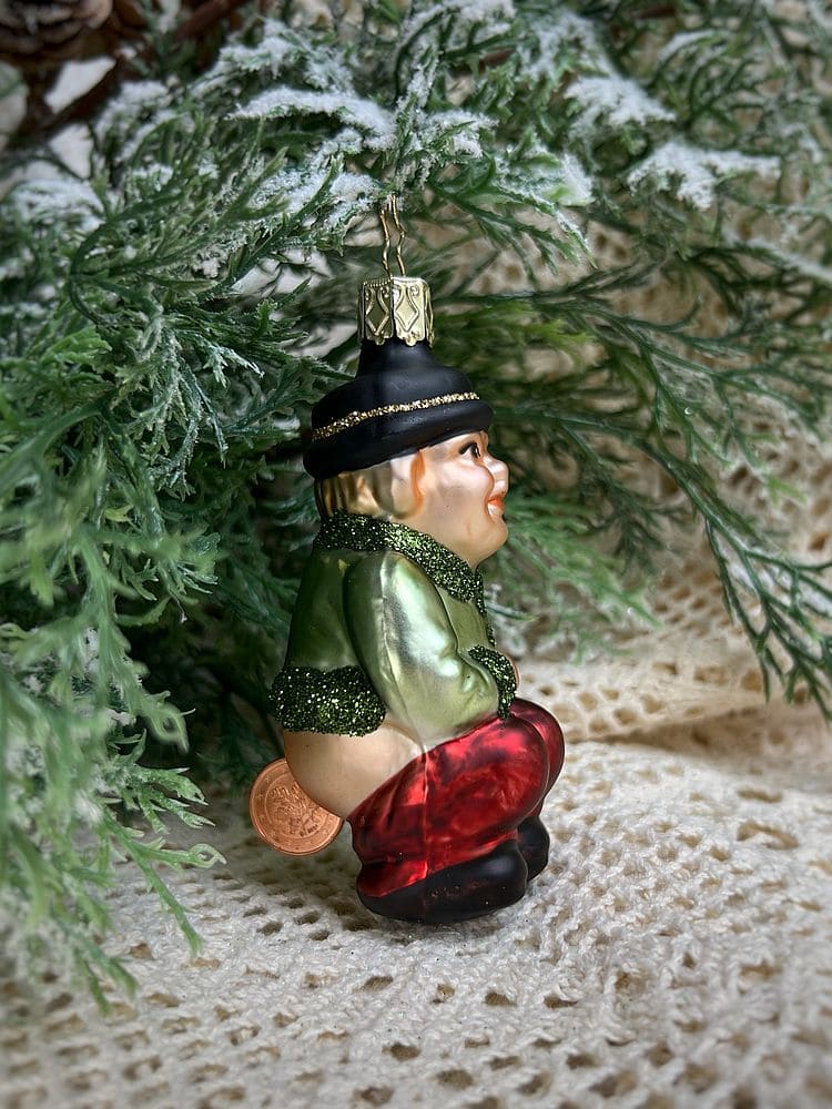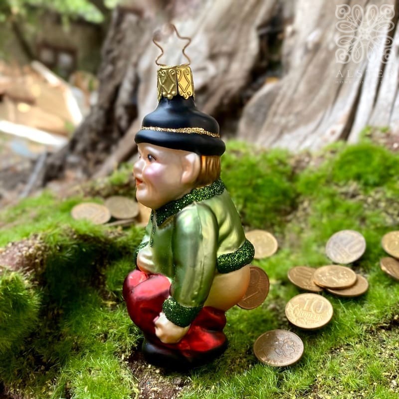 Inges Christmas Decor Cash Cow Стеклянная елочная игрушка ручной работы Гном с монеткой, высота - 10 см. Чтобы елочные игрушки Inge Glas служили вам в течение долгих лет, пожалуйста, соблюдайте правила по уходу (смотрите вкладку Подробности)