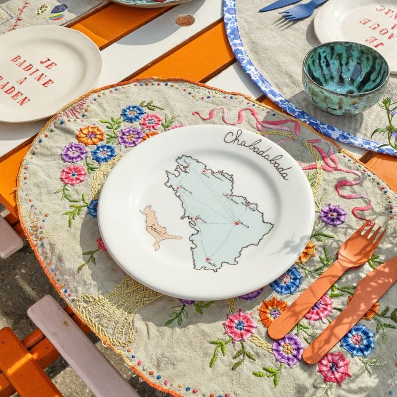 Лоуренс Махео, модельер и основатель La Prestic Ouiston, привносит свой мир в фаянсовую посуду в этом эксклюзивном сотрудничестве с Faiencerie de Gien. У двух брендов общий вкус к богатым дизайнам, цветам и узорам. Эта коллекция, представляющая нежный, красочный и чувственный мир, начинается с основных принтов бренда ready-to-wear: женщина в цвету, Арроз-мои, культовая пара драконов и бигуден, отправляющийся на рыбалку за различными морскими объектами. Эти прекрасные принты можно найти на тарелках, чашах, вазах, кувшинах и держателях для карточек, а затем они гармонично сочетаются с миром и историей дизайнера, от ее родной Бретани и ее сочных устриц до ее поэтических рассказов: "Шабадабада" и Nousdeux1984@Gmail.com. Все это нарисовано Лоуренсом Киберлейном, другом и давним партнером бренда.