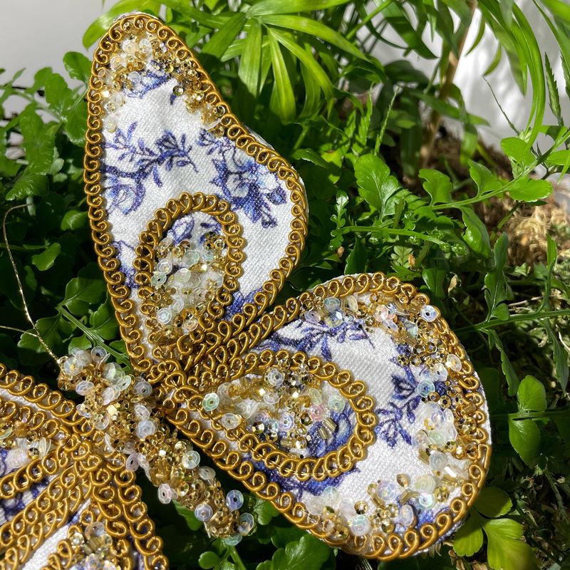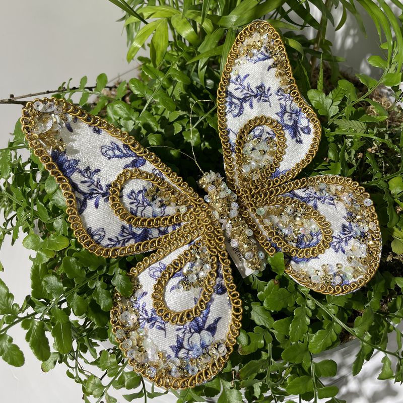 —Goodwill Елочная игрушка на прищепке Бабочка с золот. пайетками, размер - 17 см, цвет - белый, синий