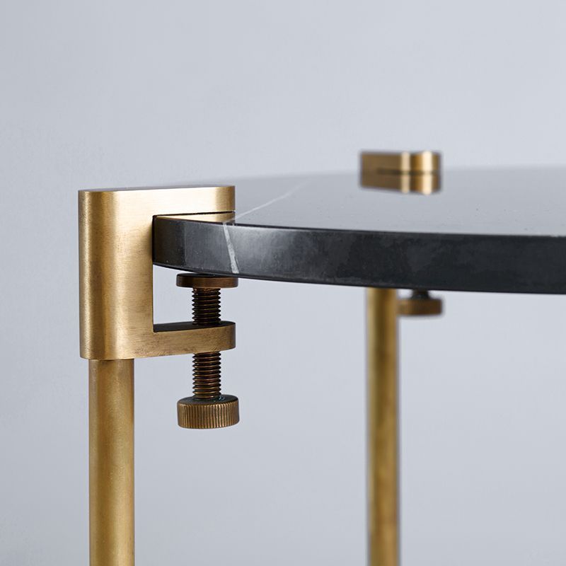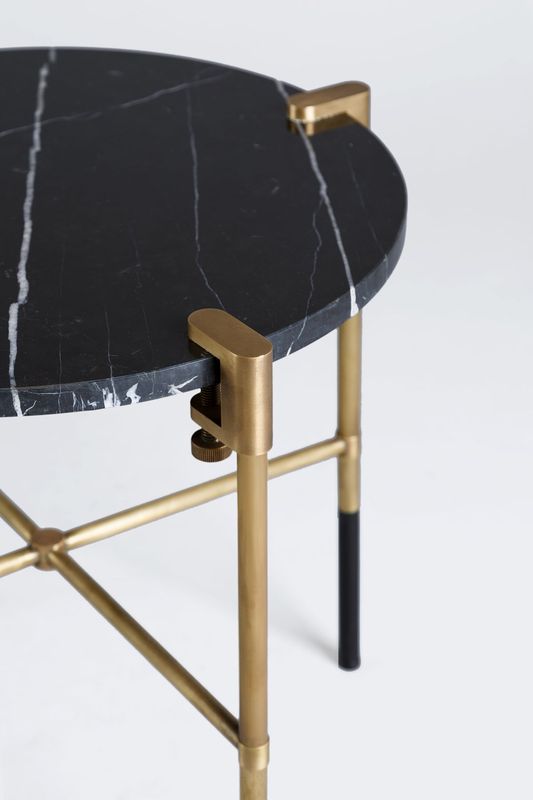 46°57 с.ш. и 07°27 в.д. — географические координаты, указанные в названии предмета, соответствуют городу Берн. Его индустриальная застройка и атмосфера сдержанной роскоши вдохновили дизайнеров на создание столика из серии 46° – 7° BERN. Этот образ выражен не только в конструкции предмета, но и в подобранных материалах: видимые элементы из латуни — струбцины — надежно фиксируют столешницу из мрамора или кварцевого камня.