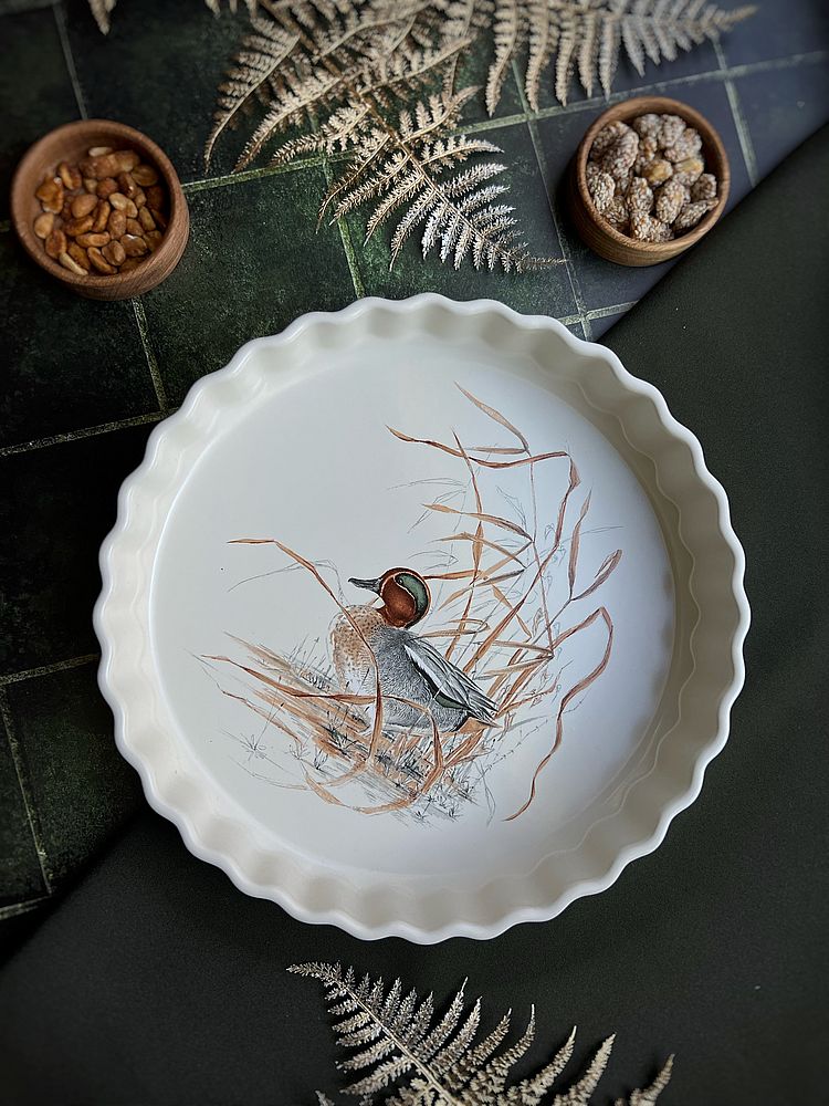 Gien Sologne - посуда для охотников! Натуралист в душе, Эстель Реботтаро, профессиональная художница мира фауны, создаёт коллекцию посуды Sologne. Её оригинальное и тонкое мастерство восторгает всех любителей природы. В коллекции представляются разные природные моменты, например: притаившийся в высоких травах, заяц смотрит на нас сверкающим глазом; окраска бекасов и уток-мандаринок, прогуливающихся по пруду, дарят нам осенние, природные тона. Посуда Sologne может стать отличным подарком любителю охоты и дикой природы! Керамическая форма для выпечки французского бренда Gien идеальна для приготовления тартов, кишей, омлетов и пирогов. Красивая форма и дизайн делают возможной подачу блюда на стол прямо в форме. Кроме того, резать пирог можно, не опасаясь поцарапать или повредить форму! Каждая хозяйка по достоинству оценит формы для выпечки Gien!