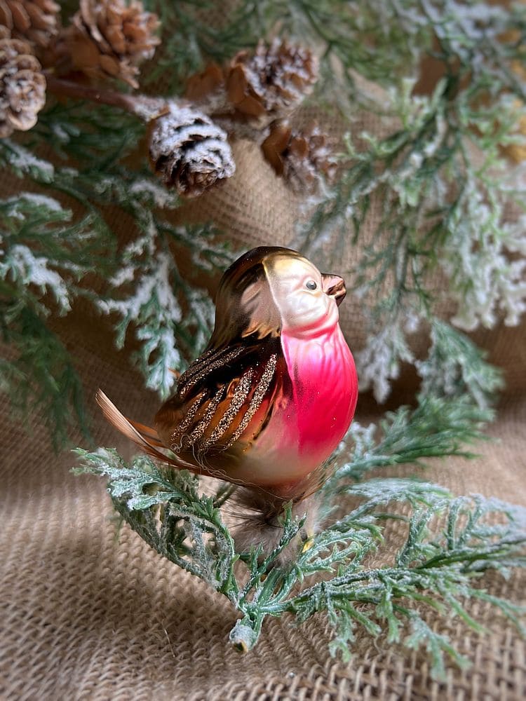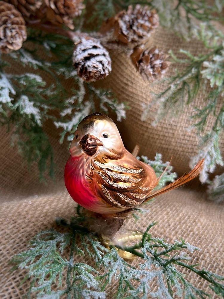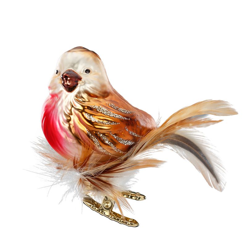 Inges Christmas Decor Robin Стеклянная елочная игрушка на прищепке ручной работы Бронзовая птичка с красной грудкой и пушистым хвостом, размер - 5 см. Чтобы елочные игрушки Inge Glas служили вам в течение долгих лет, пожалуйста, соблюдайте правила по уходу (смотрите вкладку Подробности).
