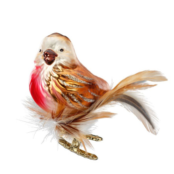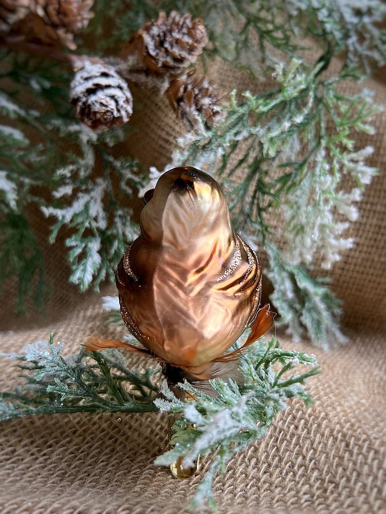 —Inge Glas Стеклянная елочная игрушка на прищепке Бронзовая птичка с пушистым хвостом, размер - 5 см