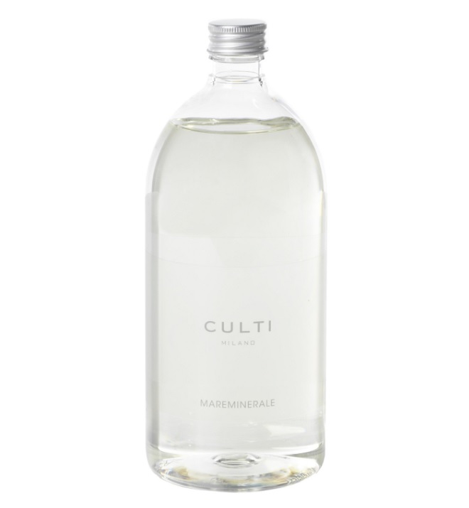 Рефил для заправки диффузора Culti Milano Mareminerale.  Объем - 1000 мл. Продолжительность действия: 6 месяцев. Соединение всей стимулирующей и кислородной энергии моря, минерального мускуса, чарующей линфы.