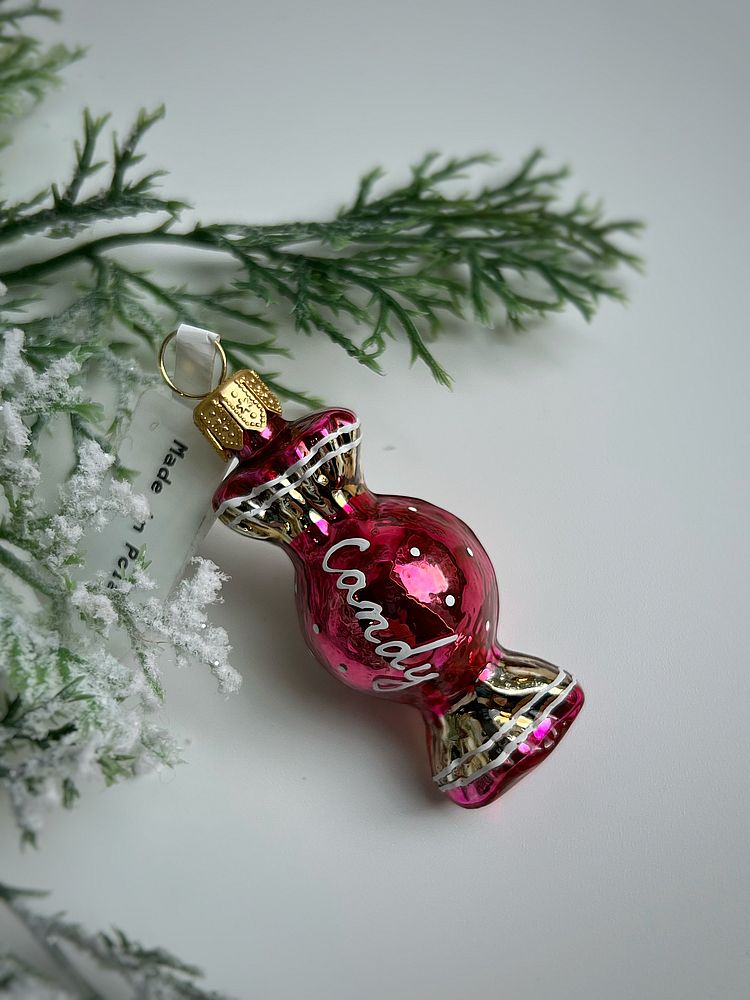 Kruzel Candy Стеклянная елочная игрушка ручной работы Конфета - карамель, высота - 7 см, цвет - малиновый. Страна-производитель - Польша