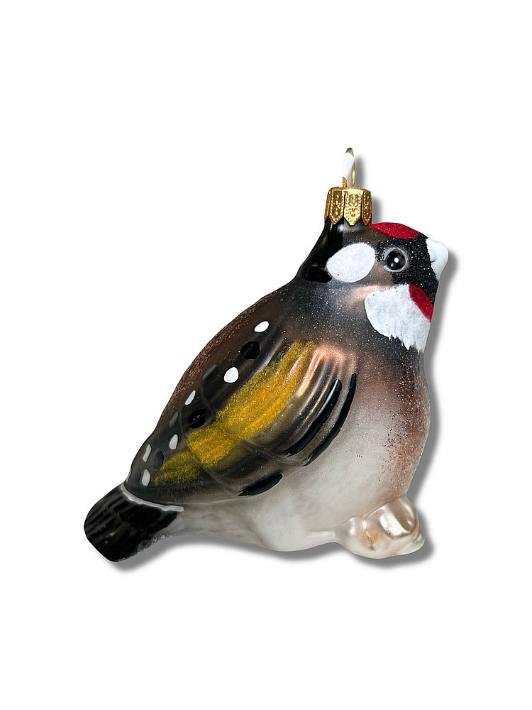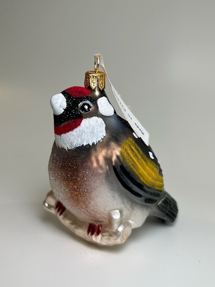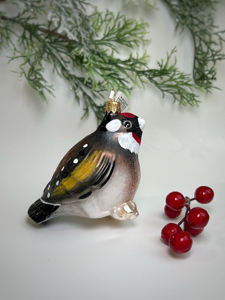 —Kruzel Стеклянная елочная игрушка ручной работы Птица Щегол - 9.5 см