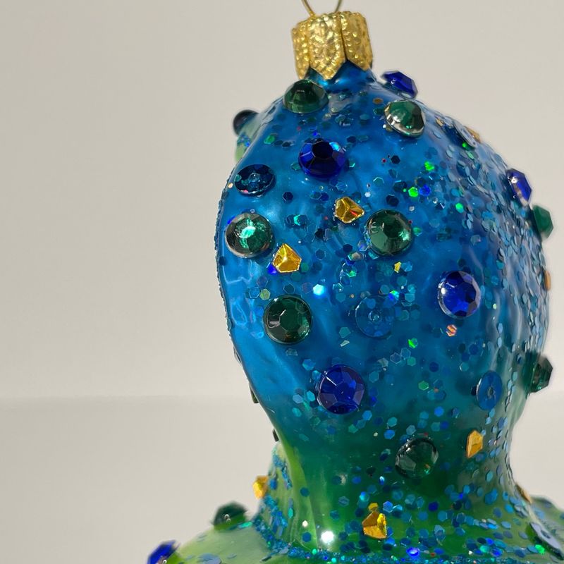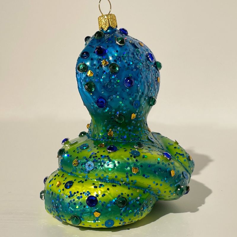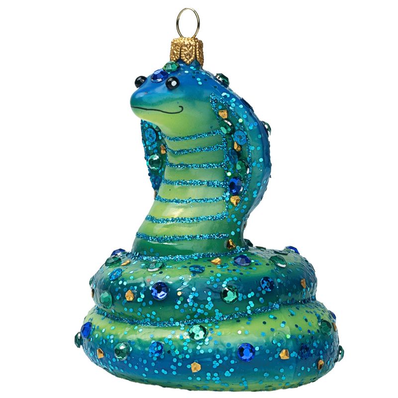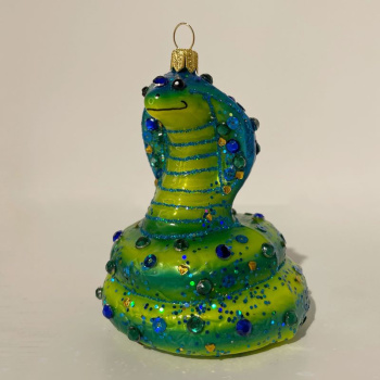 Impuls King Cobra Snake Стеклянная елочная игрушка ручной работы Королевская кобра с кристаллами, размер - 8 см, цвет - зелено-синий