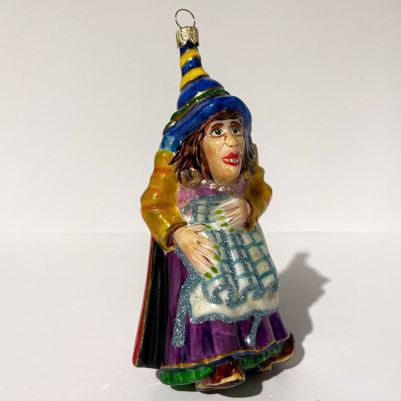 Mysteria Стеклянная елочная игрушка Ведьма из сказки Огниво, ширина - 6,5 см, высота - 12,3 см. Игрушка иллюстрирует Старуху Ведьму из сказки "Огниво" Г. Х. Андерсена.