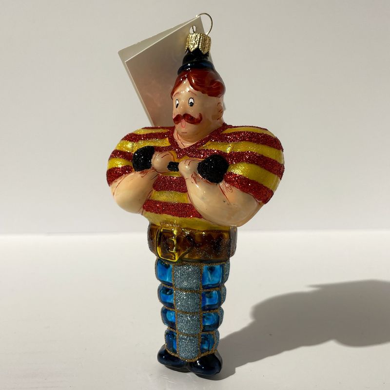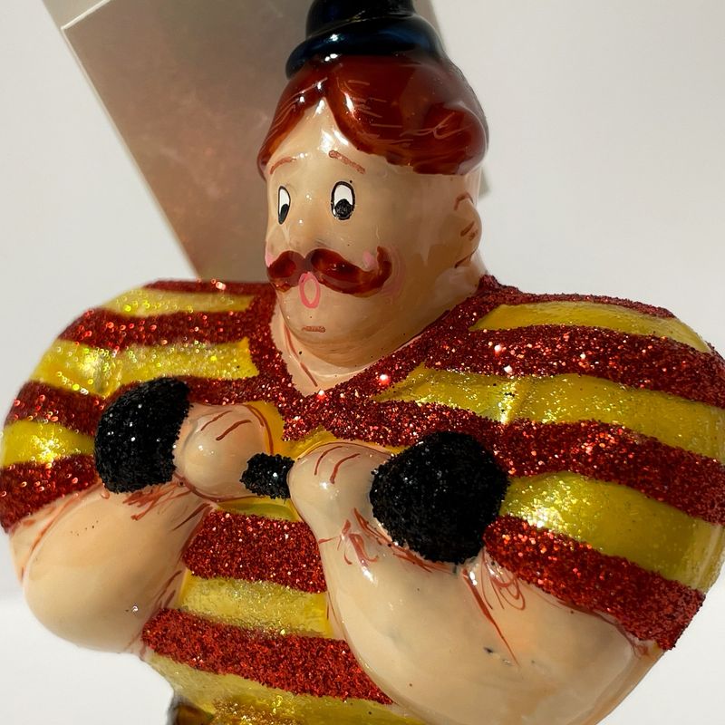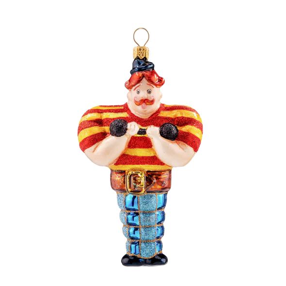 —Mysteria Стеклянная елочная игрушка Атлет с гантелей, ширина - 6,8 см, высота - 11,4 см
