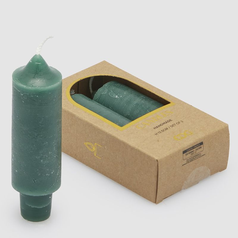 EDG Набор из 2-х свечей, высота - 12,5 см, цвет - темно-зеленый