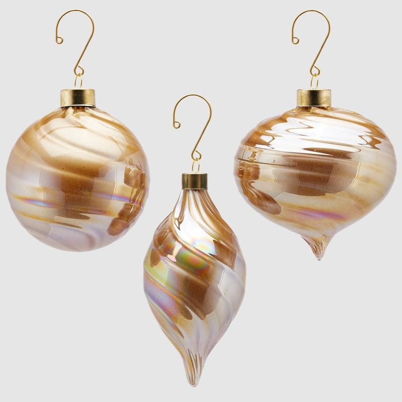 EDG Набор из 3-х стеклянных шаров с перламутровыми разводами, диаметр - 6 см, 9 см и 10 см, цвет - бежевый