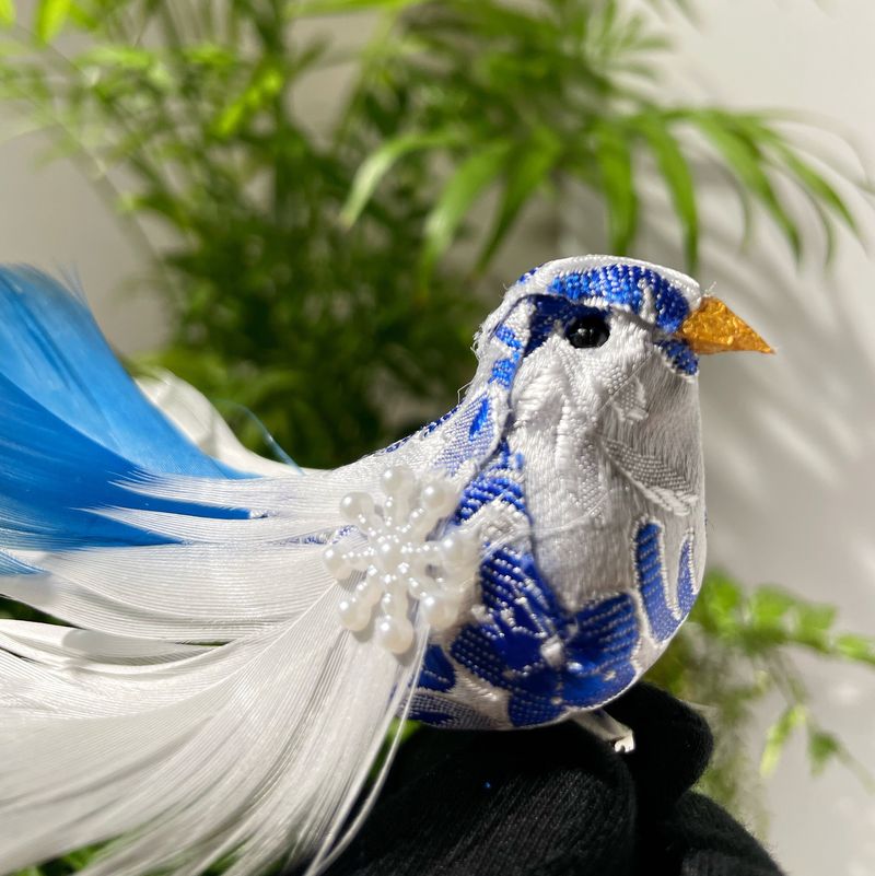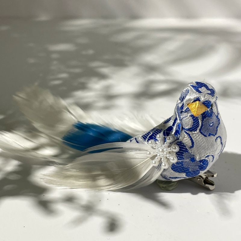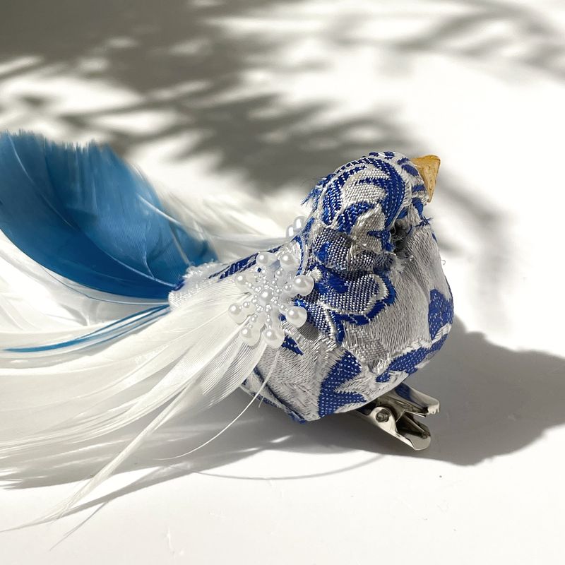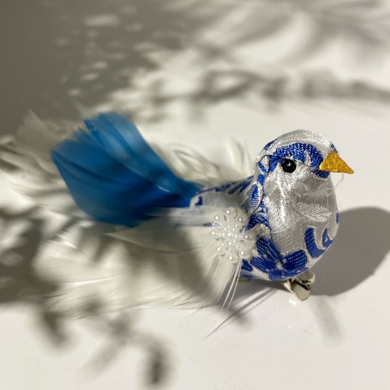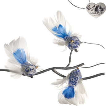 Goodwill Набор елочных игрушек на прищепке Птички с хвостом из перьев (голова смотрит прямо), размер - 10 см, цвет - синий, белый