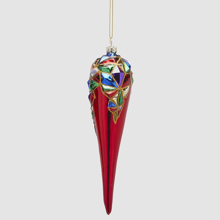 EDG Стеклянная елочная игрушка Сосулька с геометрическим узором, высота - 20 см, цвет - красный, зеленый, синий, желтый (глянцевый)