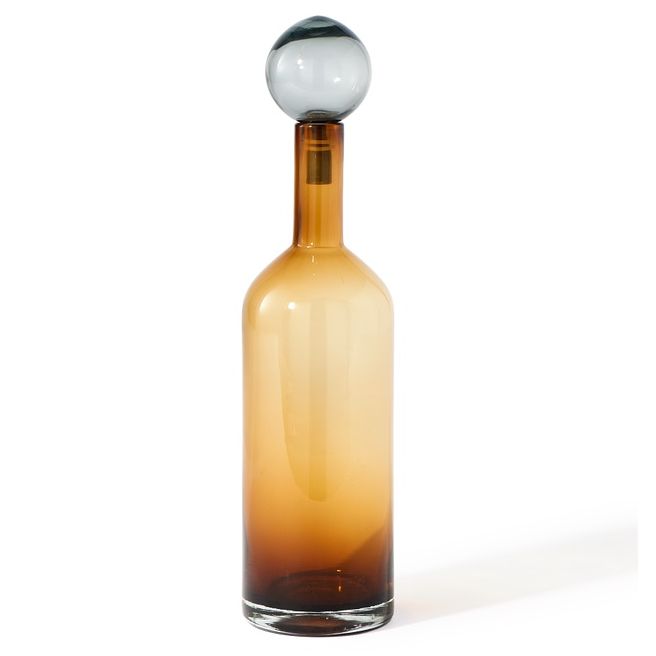 Pols Potten Bubbles & Bottles Chic Стеклянная бутылка с крышкой, размеры: 13х13х44h см, цвет бутылки - янтарный, цвет крышки - серый. Бутылку можно использовать как декор или как графин.