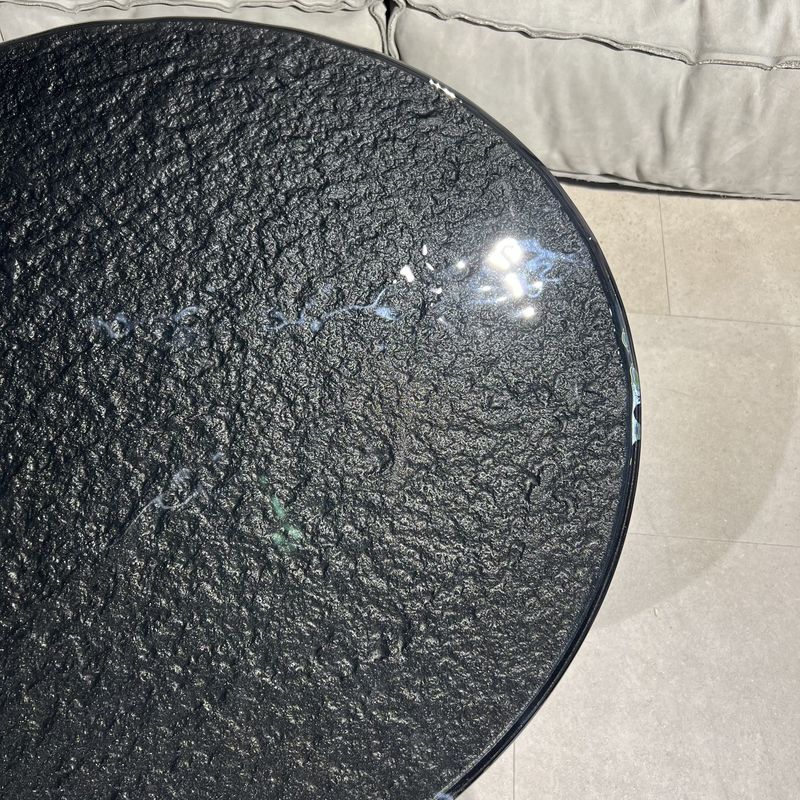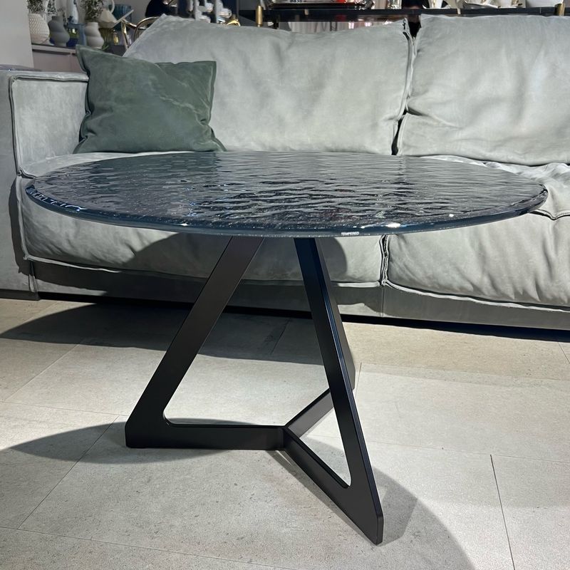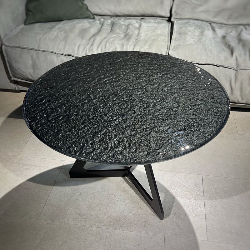 Fiam Lakes 70 Кофейный столик со стеклянной столешницей, размеры: 70 х 70 х 45h см. Материал: основание - металл, столешница - плавленное фактурное стекло (10 мм), крашенное снизу. Цвет: основание - Lava grey (серо-коричневый), столешница - черный металлик. Дизайн - Studio Klass.