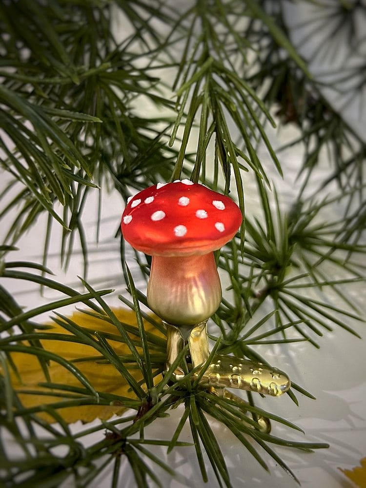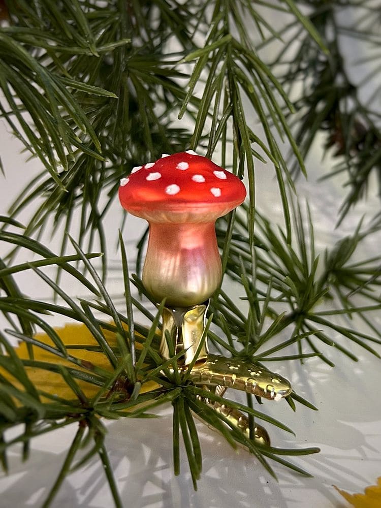 Inges Christmas Decor Flat Mini Mushroom Стеклянная елочная игрушка ручной работы на прищепке Мини - мухомор с плоской шляпкой, размер - 4,5 см, цвет - красный. Чтобы елочные игрушки Inge Glas служили вам в течение долгих лет, пожалуйста, соблюдайте правила по уходу (смотрите вкладку Подробности)
