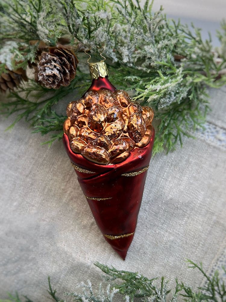 —Inge Glas Стеклянная елочная игрушка Засахаренный миндаль, высота - 14,5 см, цвет - красный