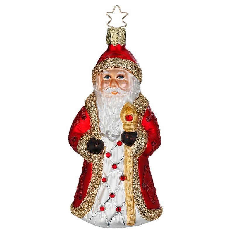 —Inge Glas Стеклянная елочная игрушка Дед Мороз с посохом и кристаллами, размер - 12 см