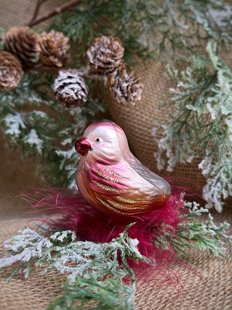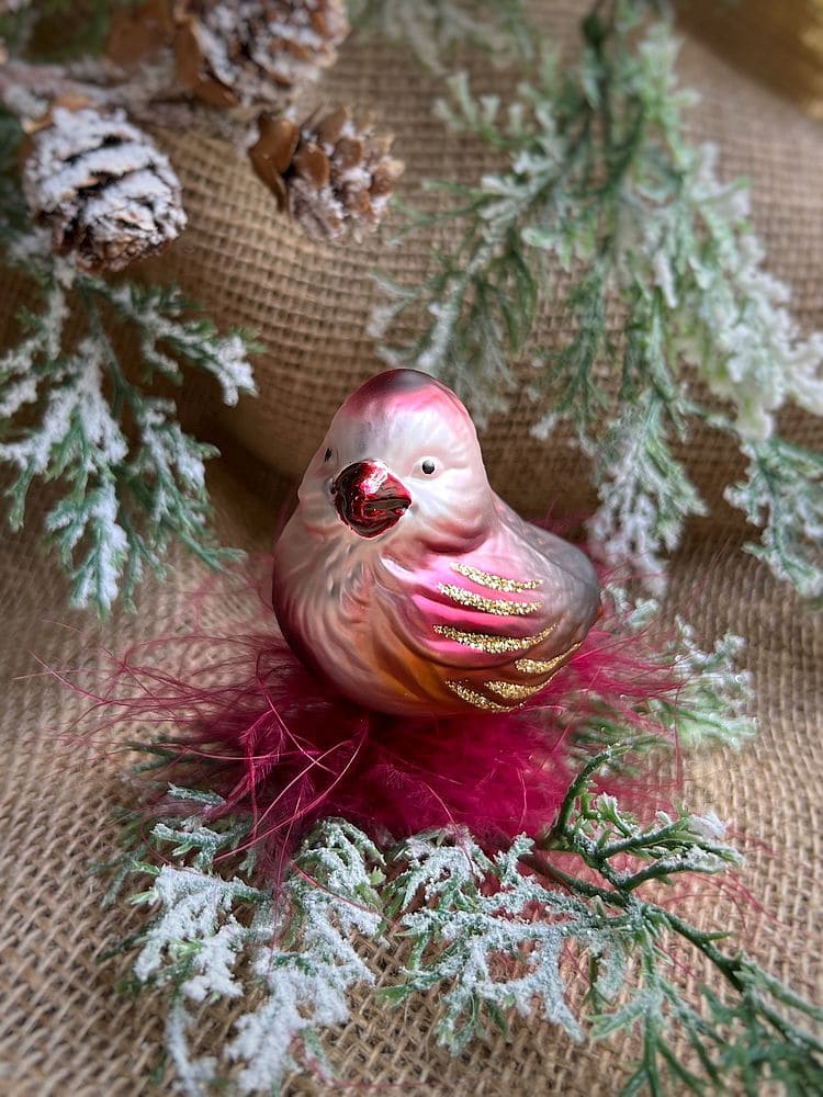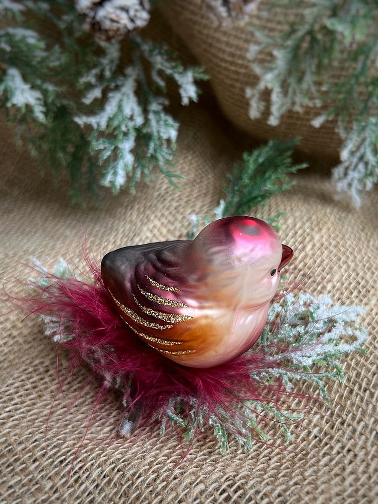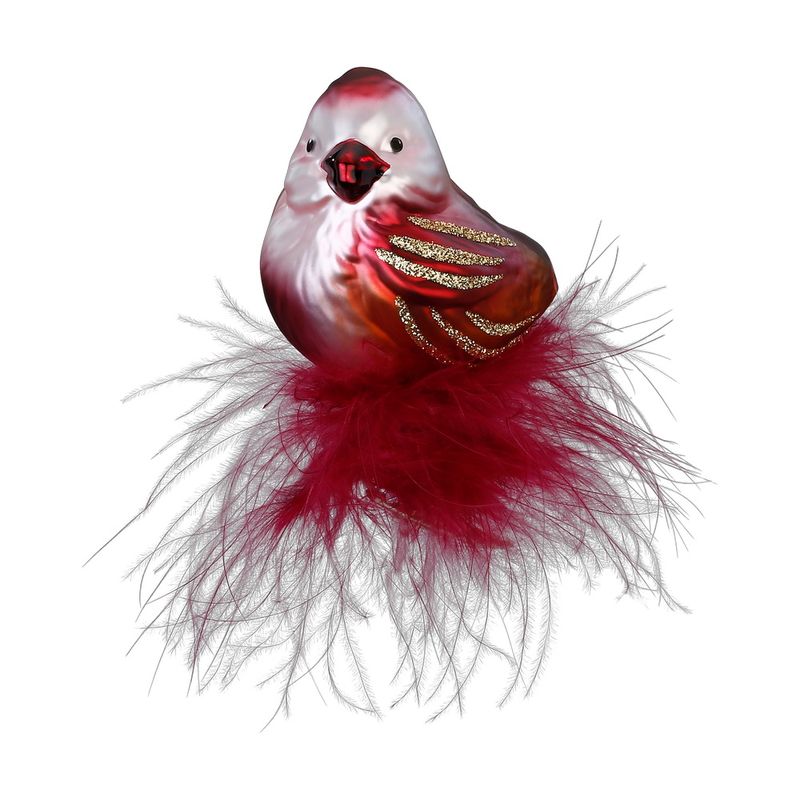 Inges Christmas Decor Fluffy Feather Стеклянная елочная игрушка на прищепке ручной работы Бордовая птичка в пушистом гнезде, размер - 7 см. Чтобы елочные игрушки Inge Glas служили вам в течение долгих лет, пожалуйста, соблюдайте правила по уходу (смотрите вкладку Подробности).