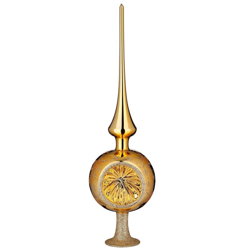 Inges Christmas Decor Golden Shine Стеклянная верхушка для ели ручной работы с рефлектором и золотыми звездами, высота - 36 см, цвет - золотой. Чтобы елочные игрушки Inge Glas служили вам в течение долгих лет, пожалуйста, соблюдайте правила по уходу (смотрите вкладку Подробности)