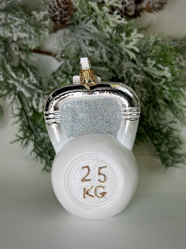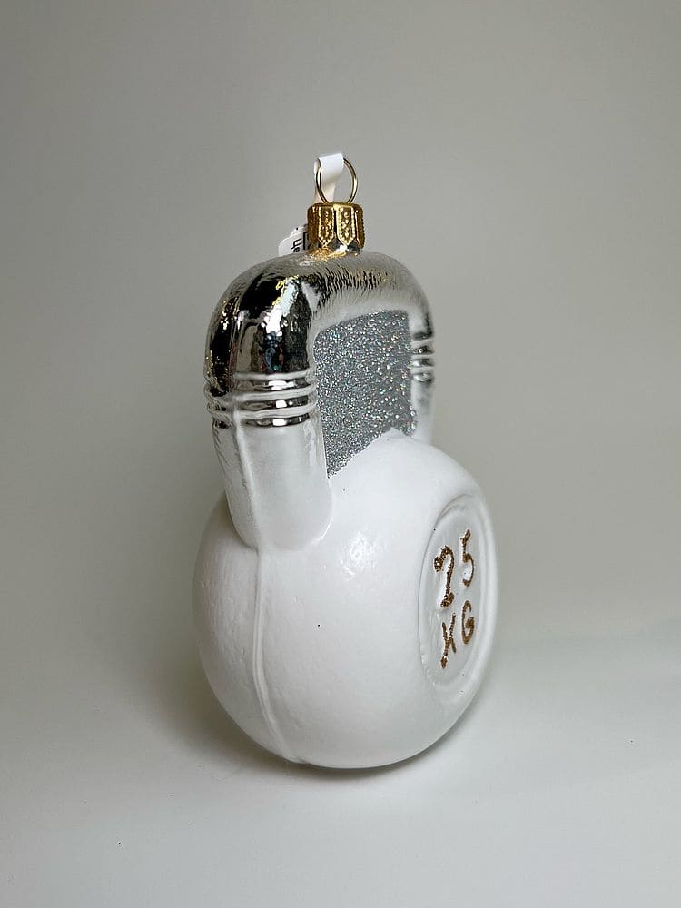 Kruzel Sport Weight Стеклянная елочная игрушка ручной работы Спортивная гиря 25 кг, цвет- белый. Страна производста - Польша.