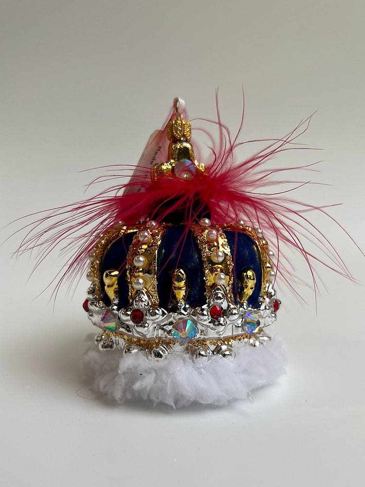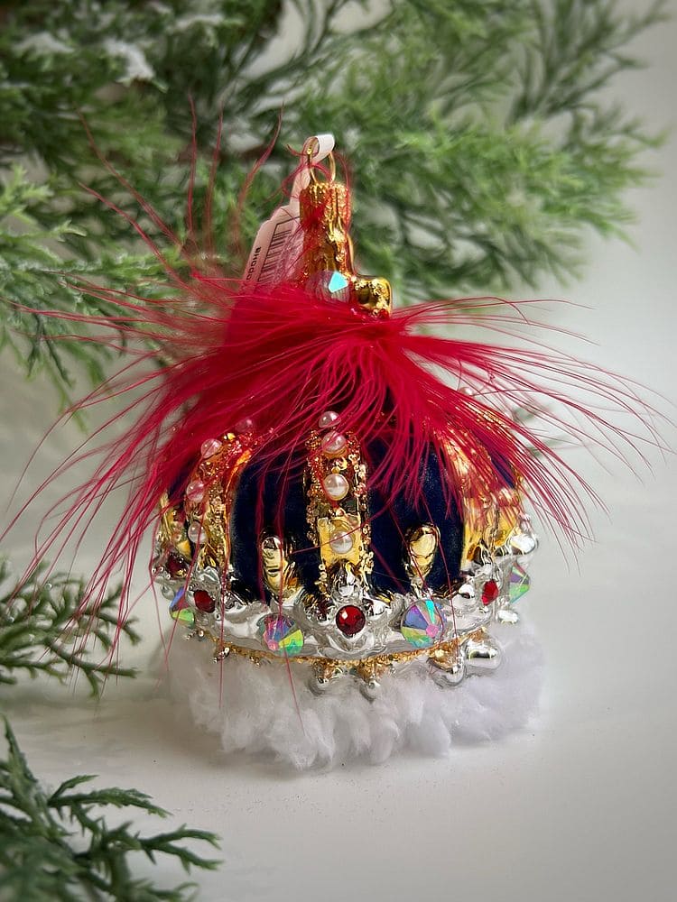 —Kruzel Стеклянная елочная игрушка ручной работы Корона с кристаллами - 10 см