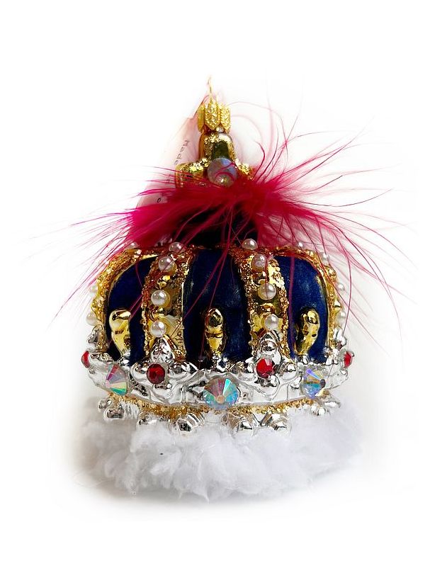 Kruzel Crown Стеклянная елочная игрушка ручной работы Корона с кристаллами, цвет- бордовый. Страна производста - Польша.