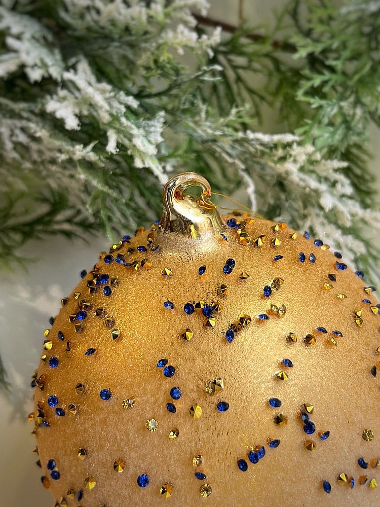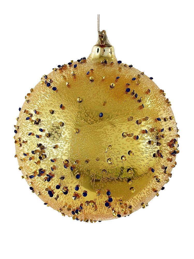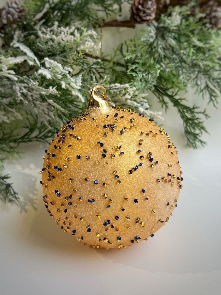 —ShiShi Стеклянная елочная игрушка Шар с синими кристаллами, диаметр - 12 см, цвет - золотой