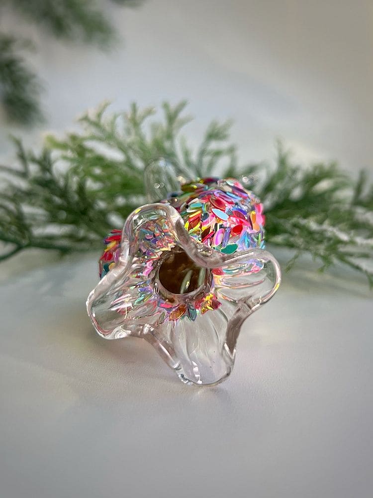 —ShiShi Стеклянная елочная игрушка Круглая карамель с крупными блестками, высота - 8 см